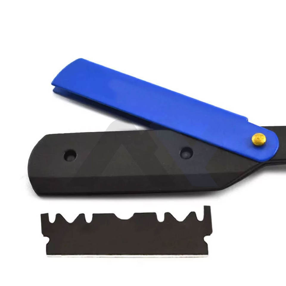 Premium Custom Swing Lock Shavette Straight Edge Razor Shaving Solid Blue Wooden Handle Black Stainless Steel Premium Razors