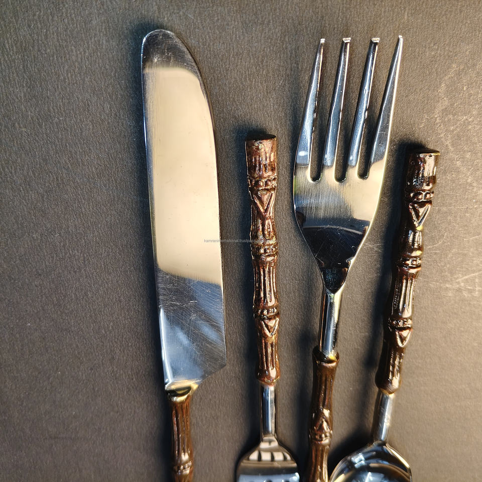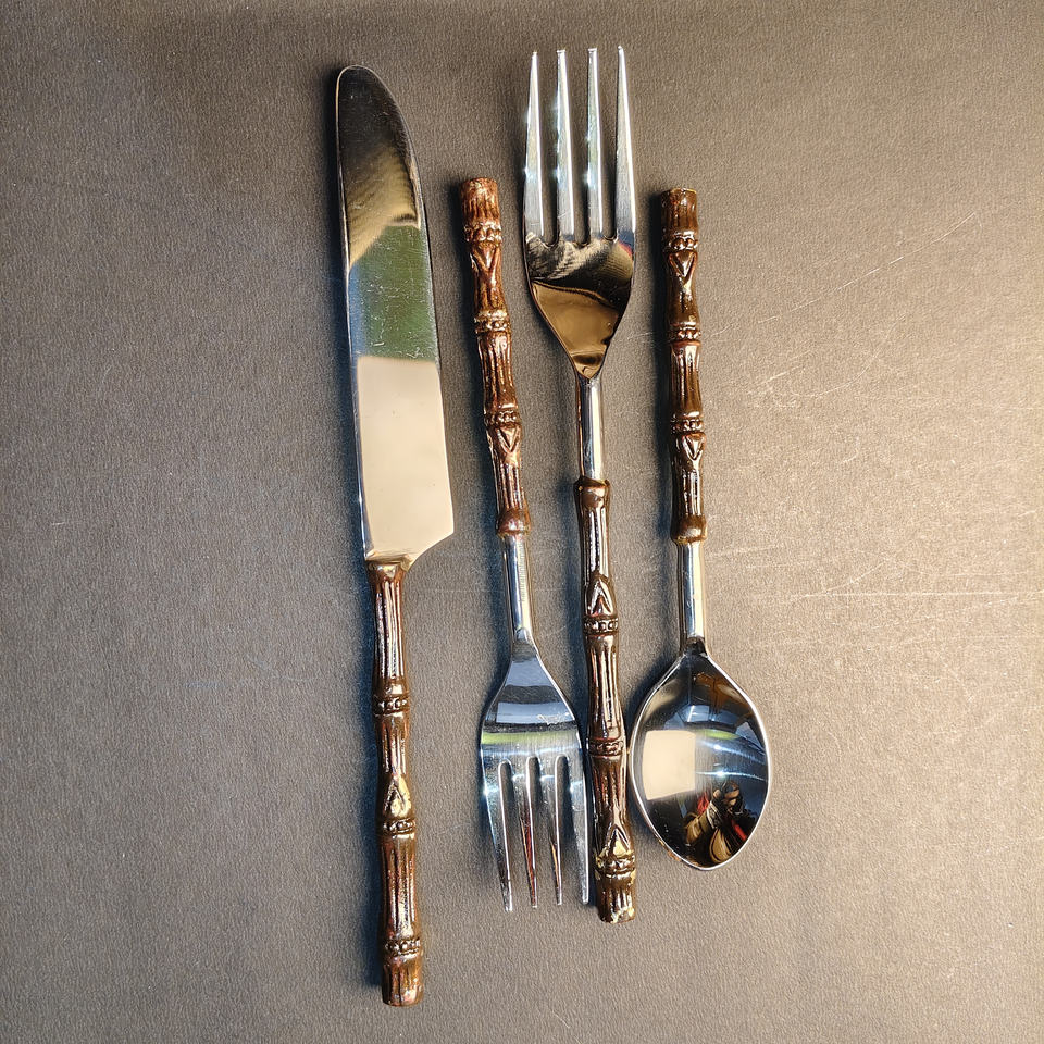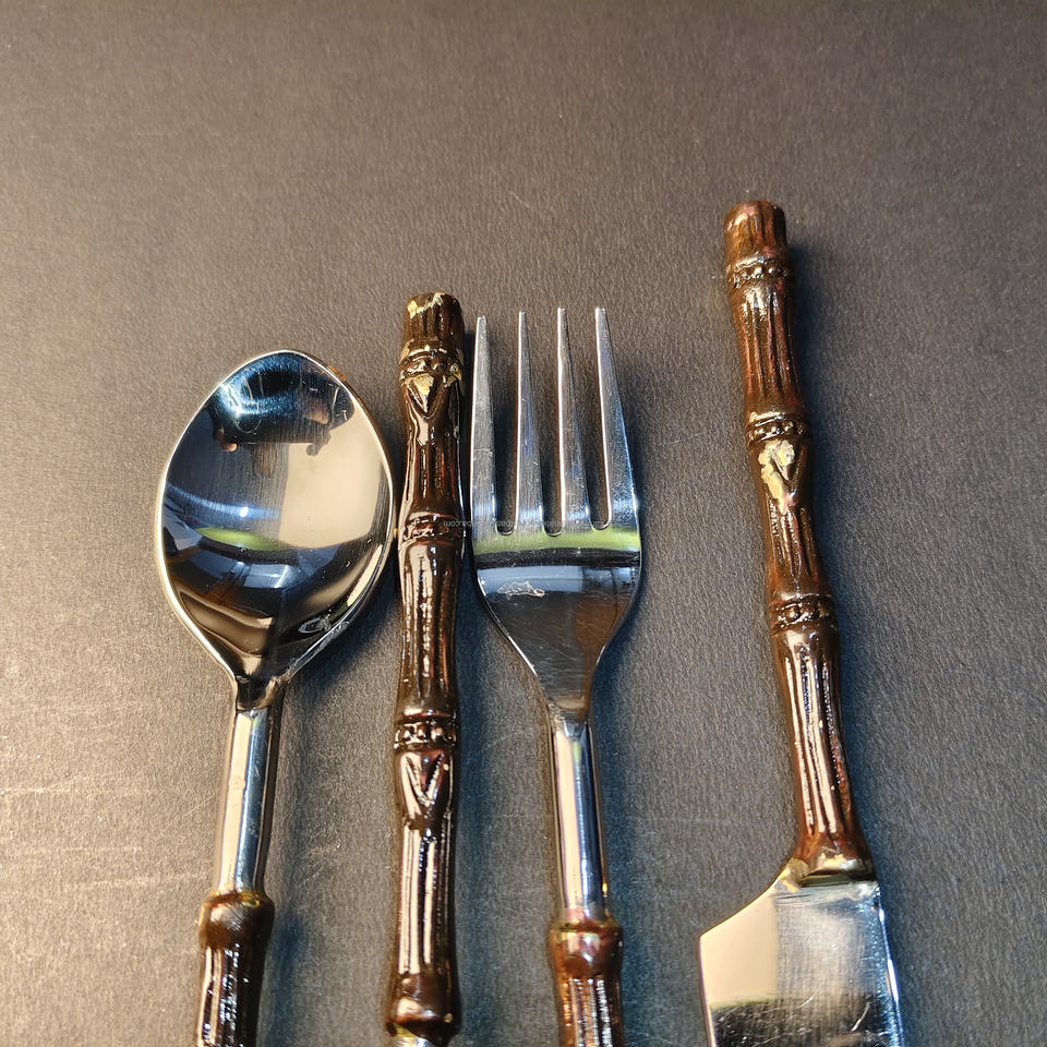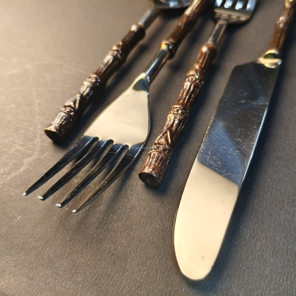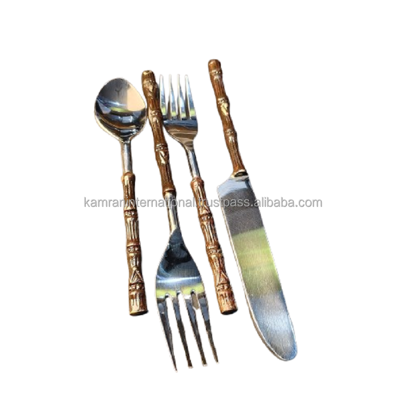 ชุดช้อนส้อมพรีเมียม | ชุดช้อนส้อม 4 ชิ้น ขัดเงาสีทอง/เงิน | อุปกรณ์รับประทานอาหารสไตล์ทรอปิคอลที่เป็นมิตรกับสิ่งแวดล้อมสำหรับโรงแรมและร้านอาหารระดับไฮเอนด์