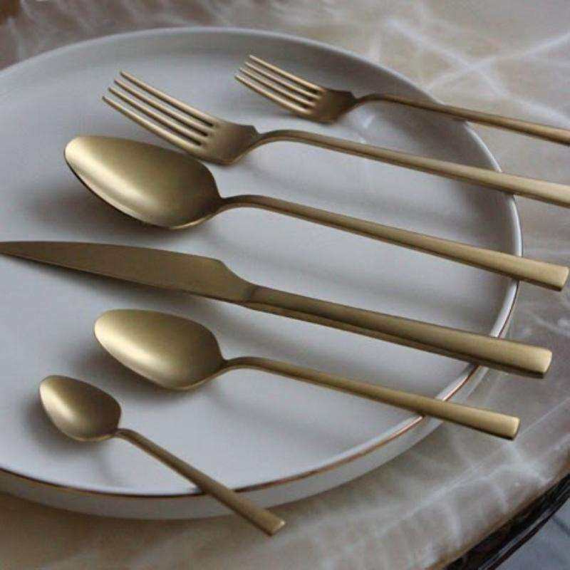 ชุดช้อนส้อมพรีเมียมพร้อมดีไซน์โบราณทำมือสำหรับการจัดโต๊ะอาหารสุดหรู วัสดุเหล็กขัดเงาเคลือบสีบรอนซ์