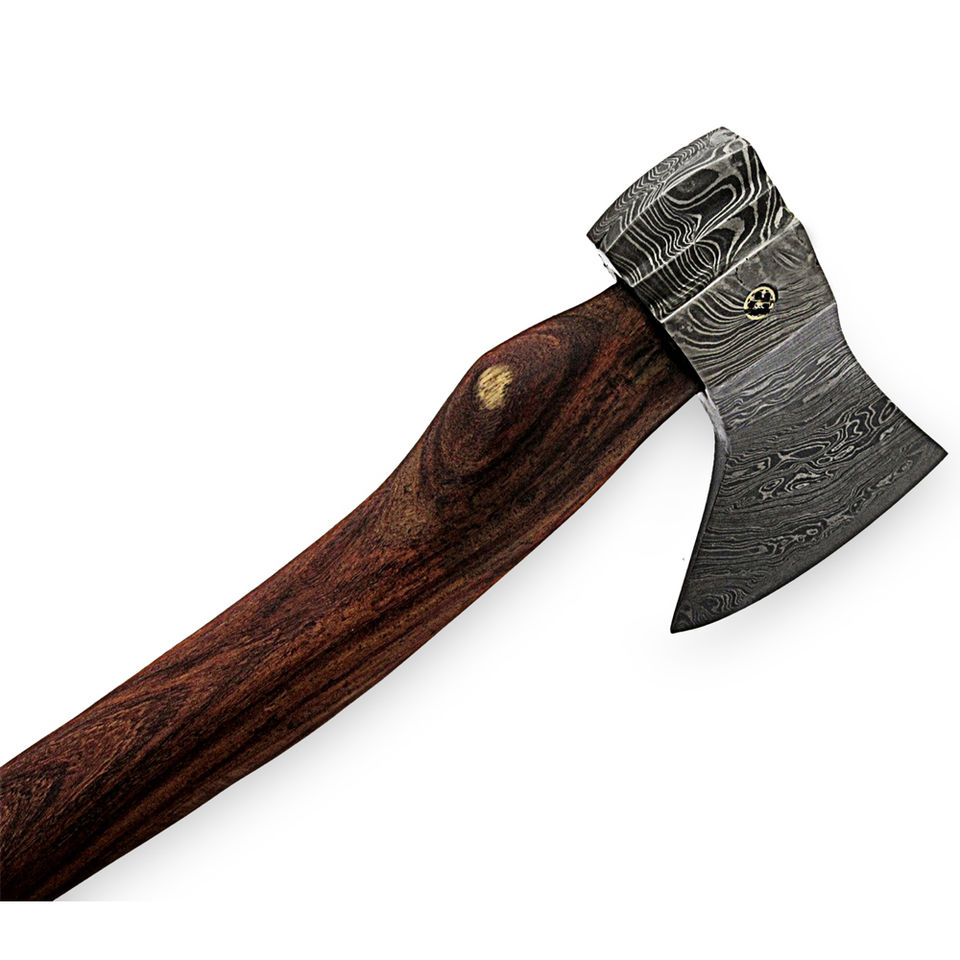 ขวานเหล็กดามัสกัสคุณภาพพรีเมียม ใบมีดลายแบบกำหนดเอง ด้ามไม้แบบดั้งเดิม สำหรับการเอาชีวิตรอดและการตั้งแคมป์