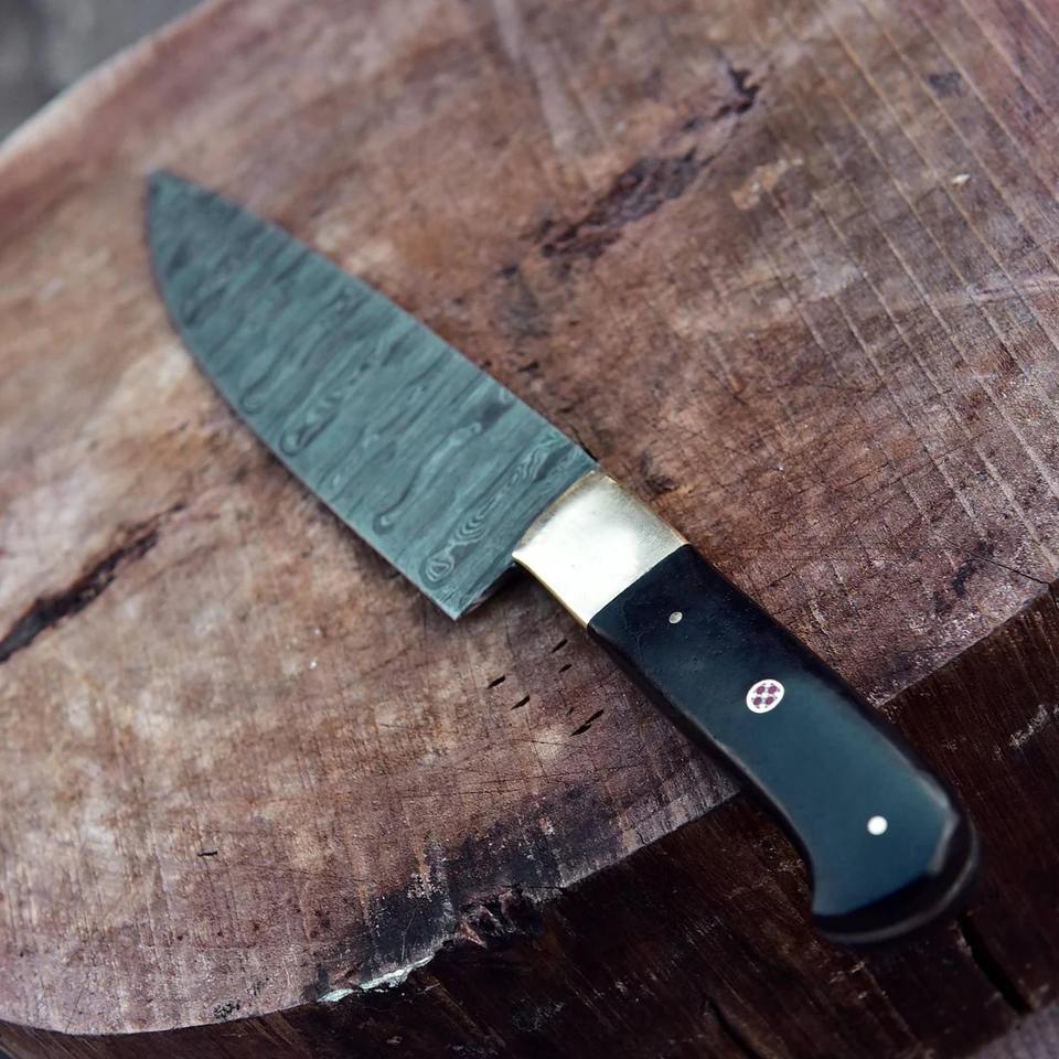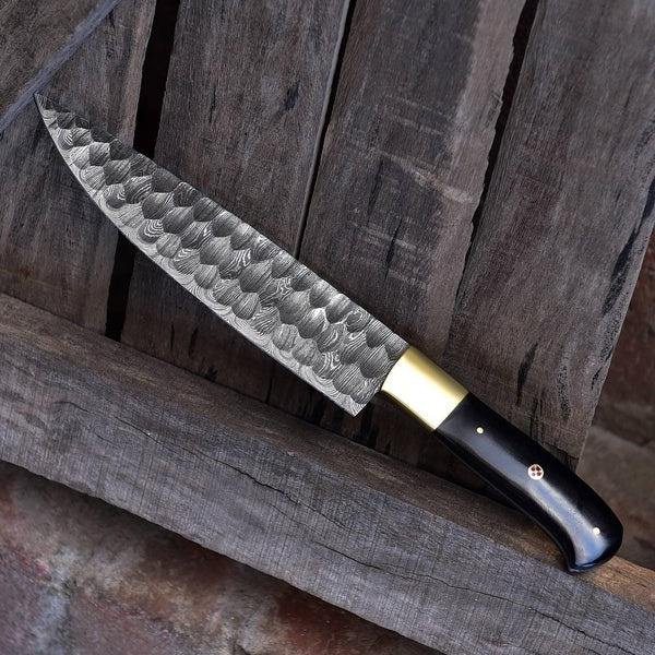 ค้อนเหล็กดามัสกัสแบบพิเศษมีดเชฟแบบบิดปรับแต่งได้ OEM สำหรับเชฟที่บ้านด้ามจับแตรทองเหลืองสำหรับเป็นของขวัญ DIY