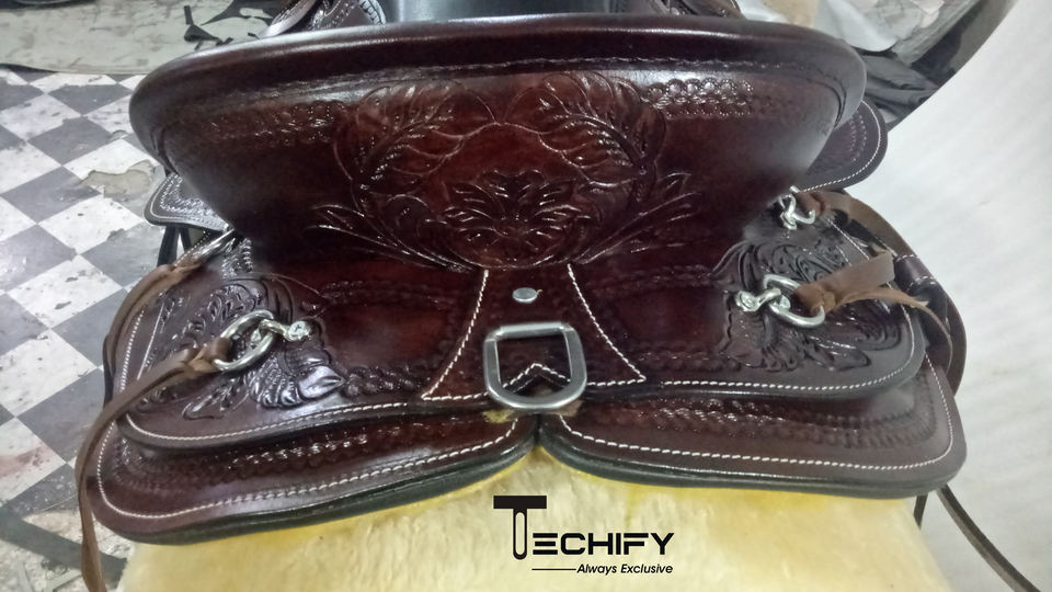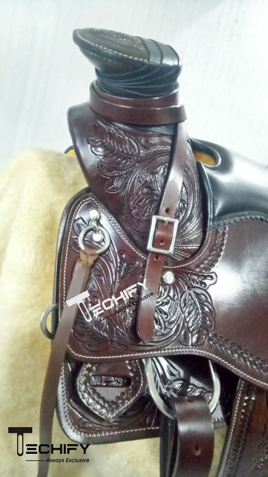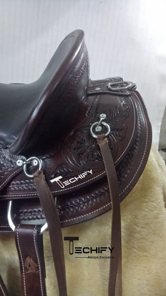 อานม้าหนังแท้สีน้ำตาลเข้มแบบตะวันตก งานฝีมือ สำหรับขี่ม้าและฝึกม้า
