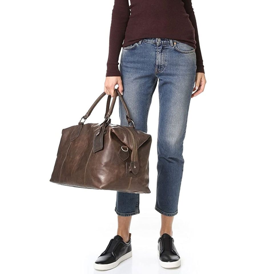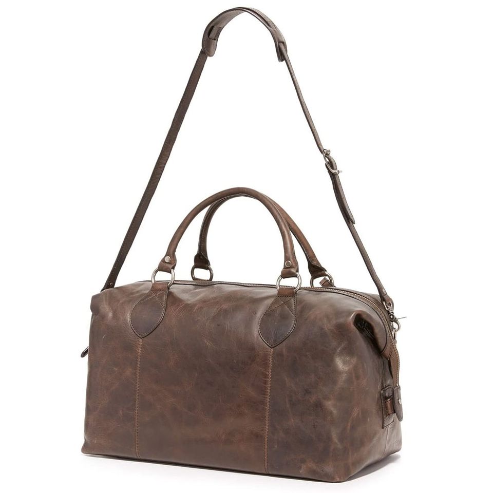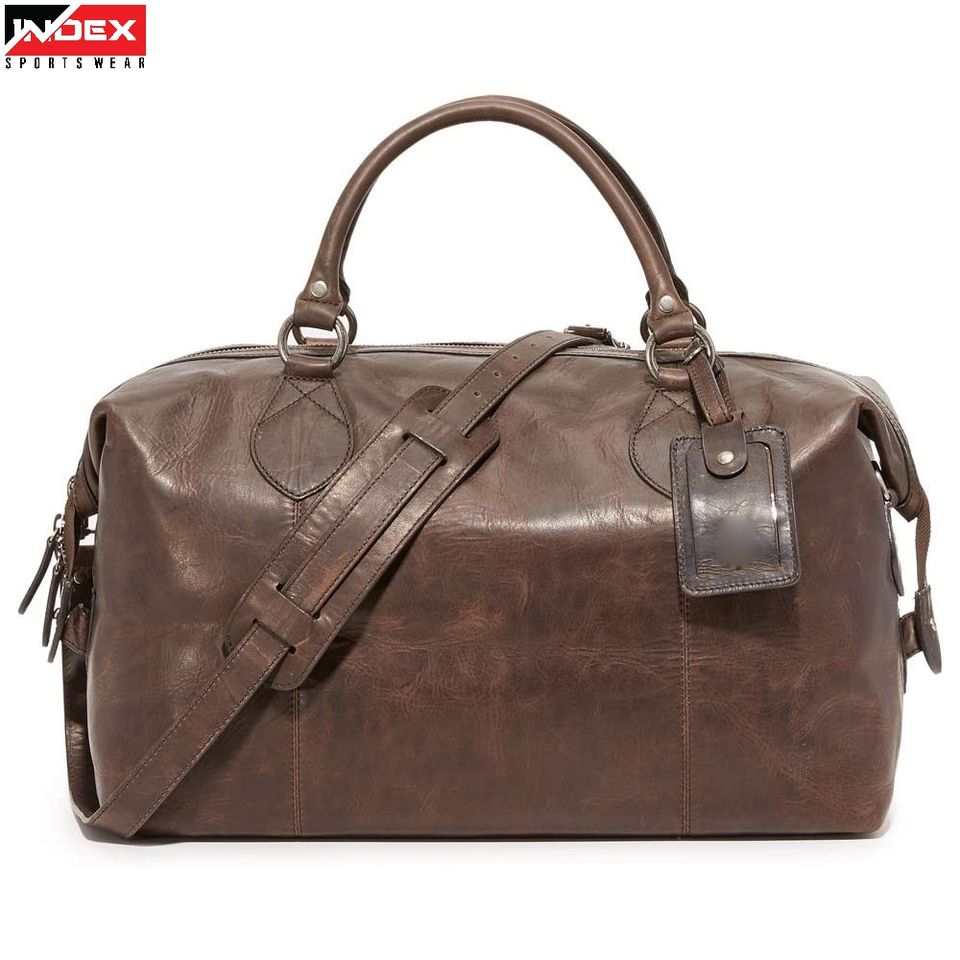 กระเป๋าเดินทางหนังสีน้ำตาลเข้มพรีเมียม สำหรับเดินทาง ออกกำลังกาย และใช้ในธุรกิจ มีสายสะพายไหล่ ขนาดใหญ่ จุของได้เยอะ