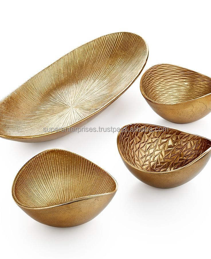ชามเสิร์ฟทองเหลืองตกแต่งอย่างหรูหราสำหรับงานเลี้ยงฉลองครบรอบ พร้อมรายละเอียดที่ประณีต