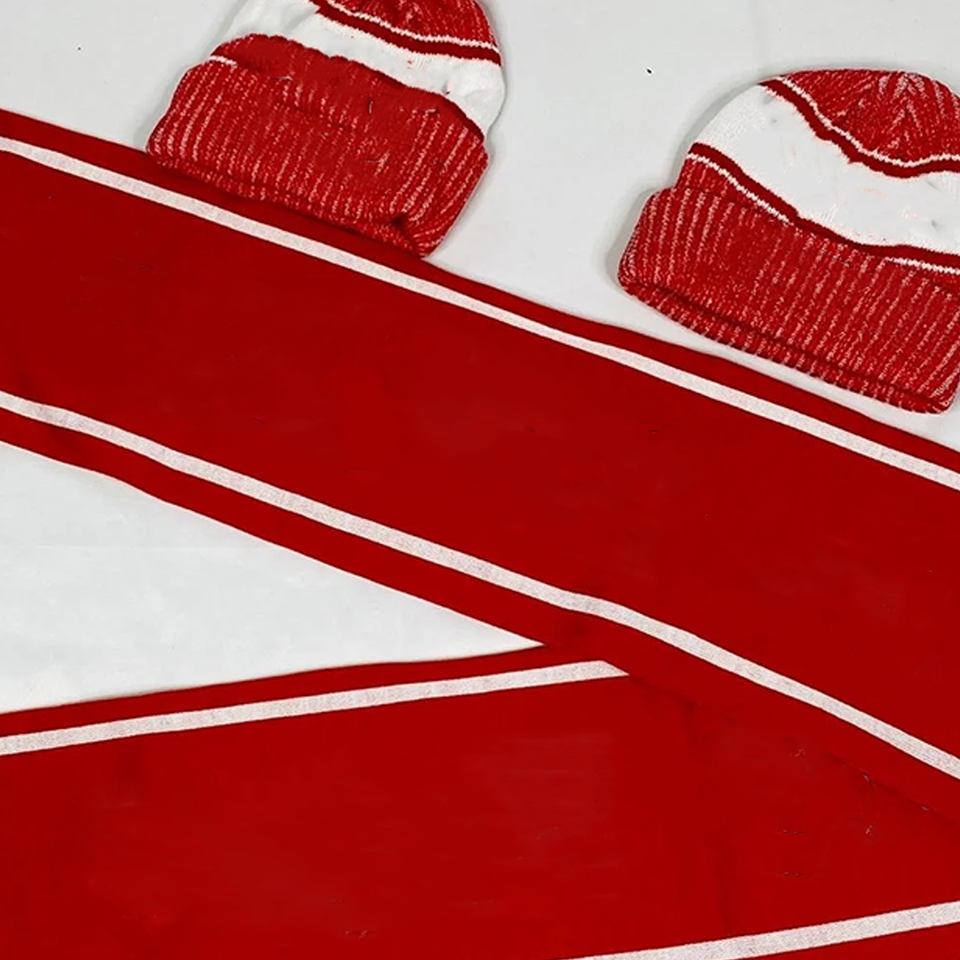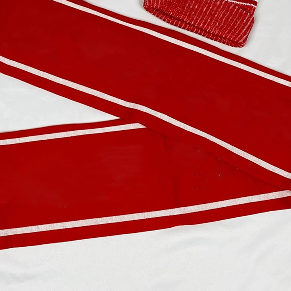 ผ้าพันคอไหมพรมอะคริลิคแบบยาวลายแจ็คการ์ดพร้อมหมวกปอมปอม ชุดเซ็ตสำหรับชมรมนักศึกษาเดลต้า ซิกมา ตีต้า (DST) รุ่นพรีเมียม - ชุดเครื่องแต่งกายฤดูหนาวแบบวาร์ซิตี้ รุ่น Fortitude Legacy