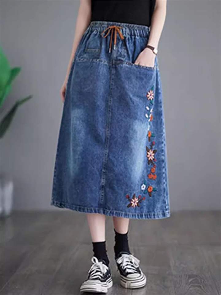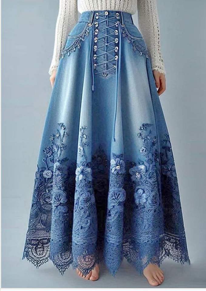 คำสำคัญ:กระโปรงยีนส์ผ่าพิมพ์ลายยาว