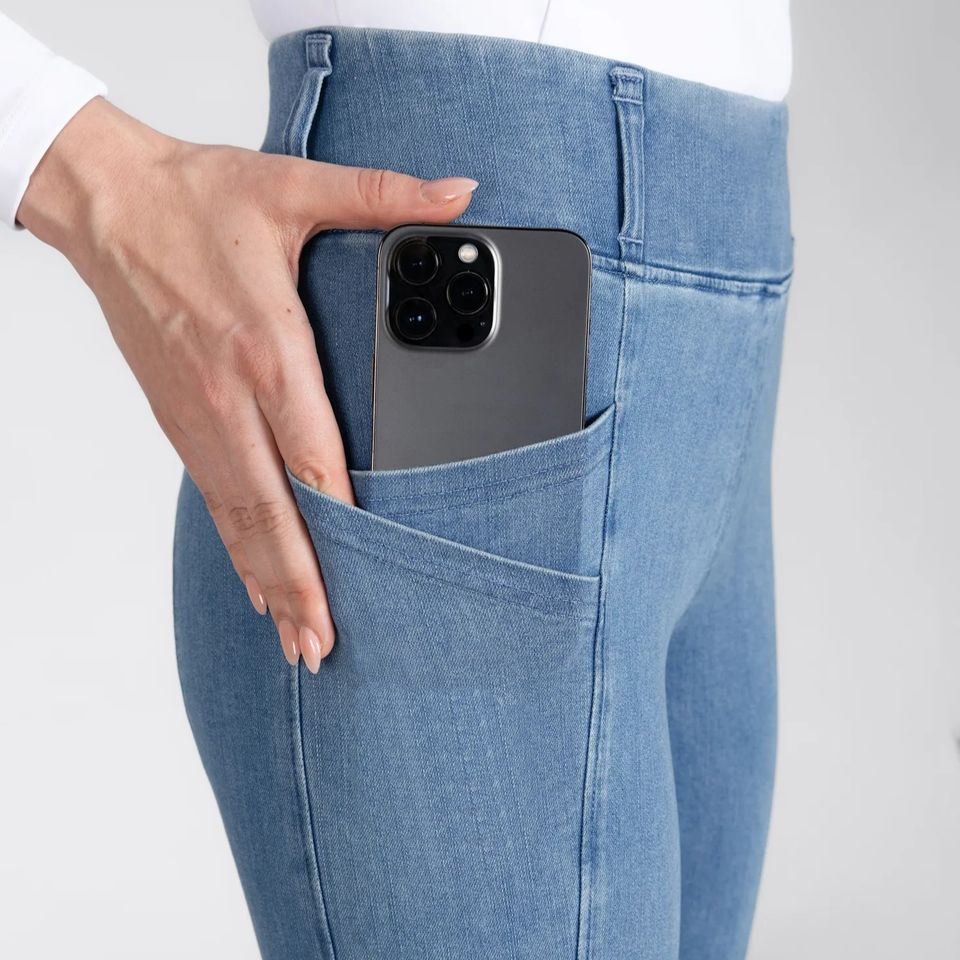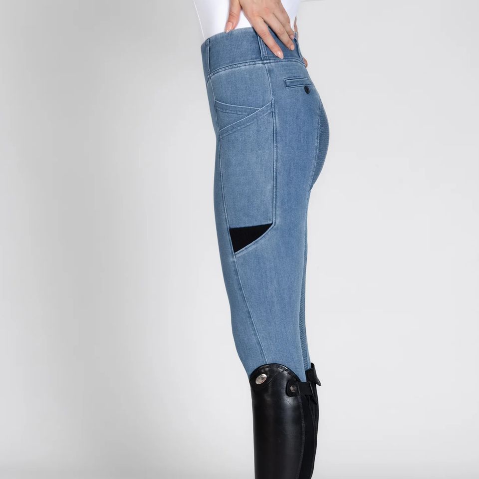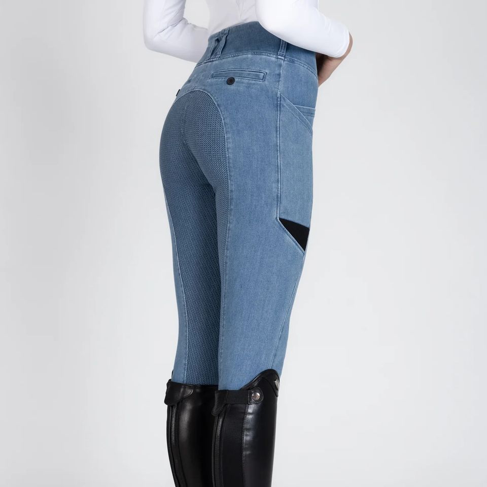 กางเกงขี่ม้าผ้ายีนส์แบบพรีเมี่ยมสำหรับผู้หญิงเสื้อผ้ายืดได้4ทางกางเกงเลกกิ้งสำหรับขี่ม้าขายส่ง