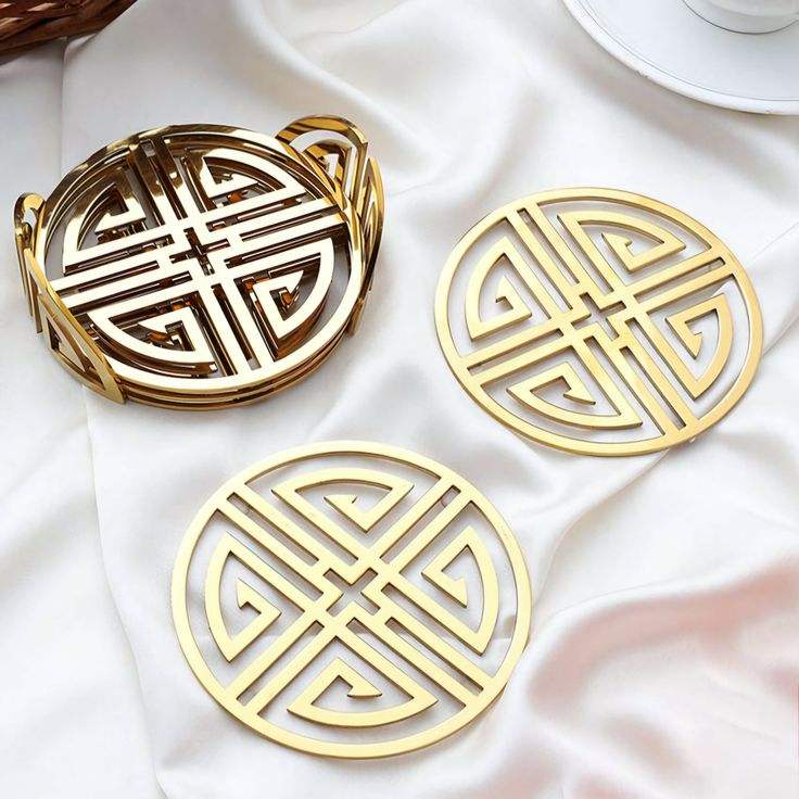 ที่รองแก้วทองเหลืองแผ่นรองจานแผ่นรองจานสเตนเลสสตีลแผ่นรองจานแกะสลักโลหะ