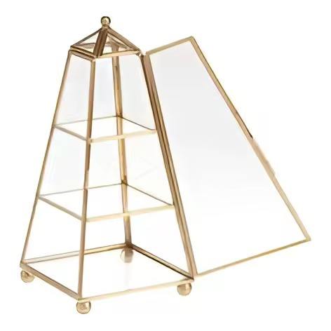กล่องใส่เครื่องประดับทองเหลืองและแก้ว ดีไซน์พรีเมียม กล่องใส่แหวน กำไล และสร้อยคอสุดหรู