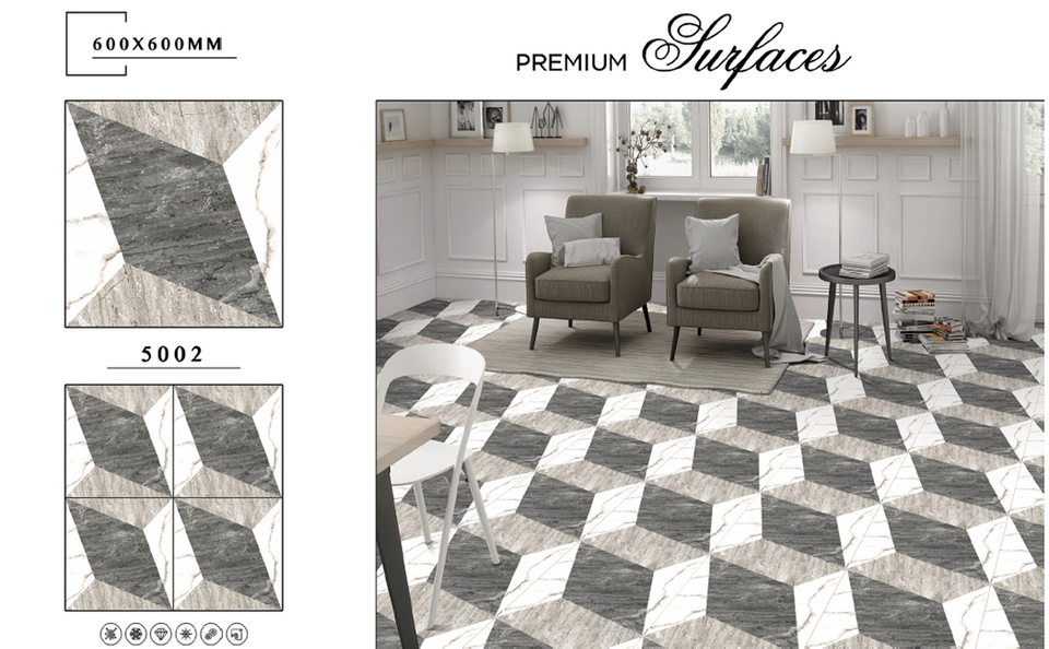 กระเบื้อง3D เซรามิกแบบเต็มขนาด600x600มม. กระเบื้องเคลือบสำหรับบ้านโรงแรม