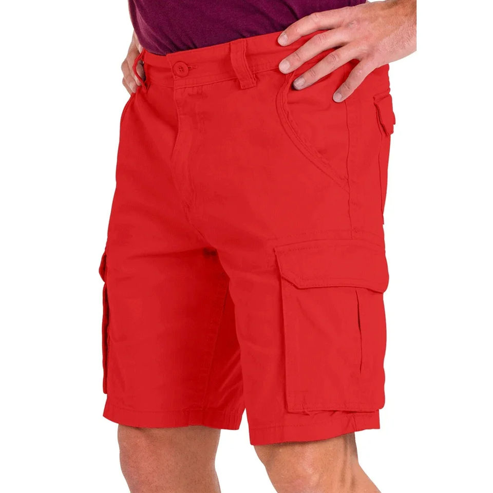 กางเกงขาสั้นคาร์โก้ผ้าฝ้ายสีแดงสำหรับผู้ชายกางเกงขาสั้นคาร์โก้สำหรับผู้ชายมีขนาดพอดีตัวปกติดีไซน์แบบลำลองฤดูร้อน