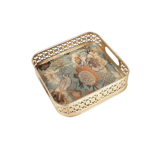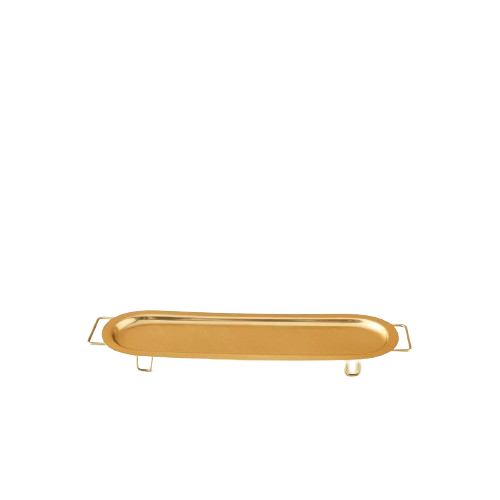 ถาดโลหะทรงสี่เหลี่ยมผืนผ้าดีไซน์แบบพรีเมี่ยมพร้อมสีทองและลายใบไม้ที่ขอบขนาด86x26x7ซม.
