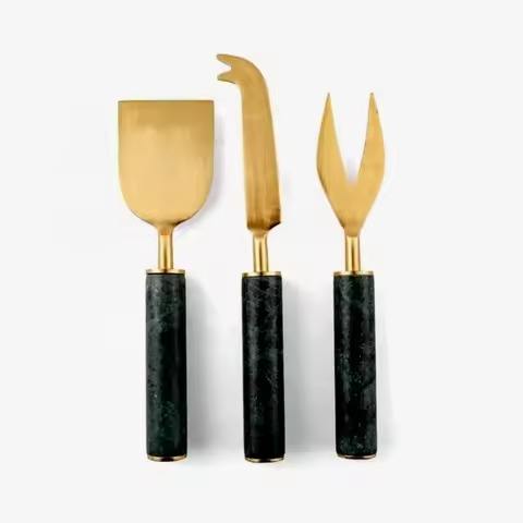 ชุดมีดชีสสแตนเลสดีไซน์พรีเมียม ด้ามจับลายหินอ่อน เครื่องมือตัดที่แม่นยำ อุปกรณ์เสริมสำหรับเสิร์ฟในครัว