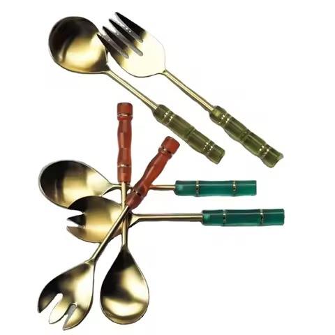 ชุดสลัดเสริฟบนโต๊ะอาหารทำจากสแตนเลสชุดเสิร์ฟอาหารทำจากโลหะสีเงินพร้อมที่จับทำจากเรซิน