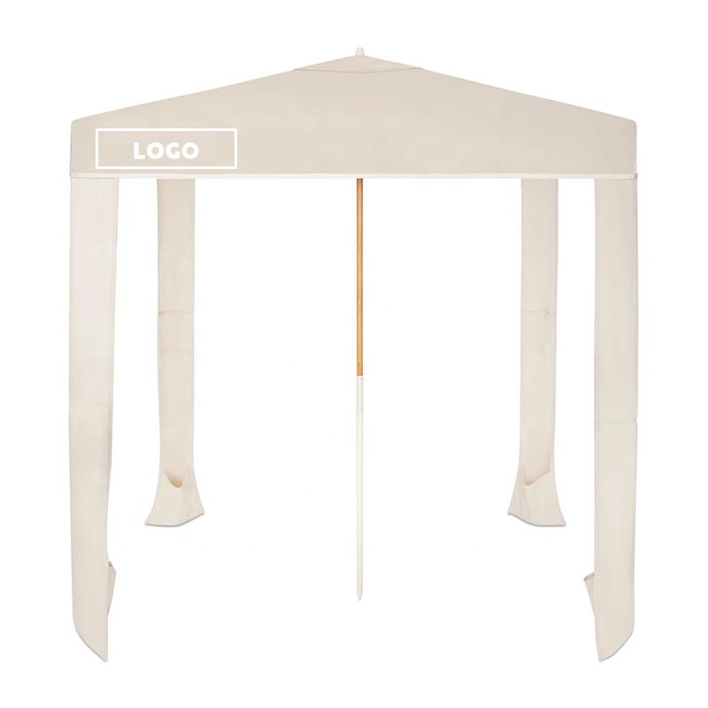 หลังคาโพลีเอสเตอร์ UV50แบบพรีเมี่ยมทำจากผ้าฝ้ายโพลีเอสเตอร์ออกแบบโลโก้ได้ตามต้องการกลางแจ้งเสาไม้ชายหาดอลูมิเนียมร่มขอบคลื่นแบบทันสมัย