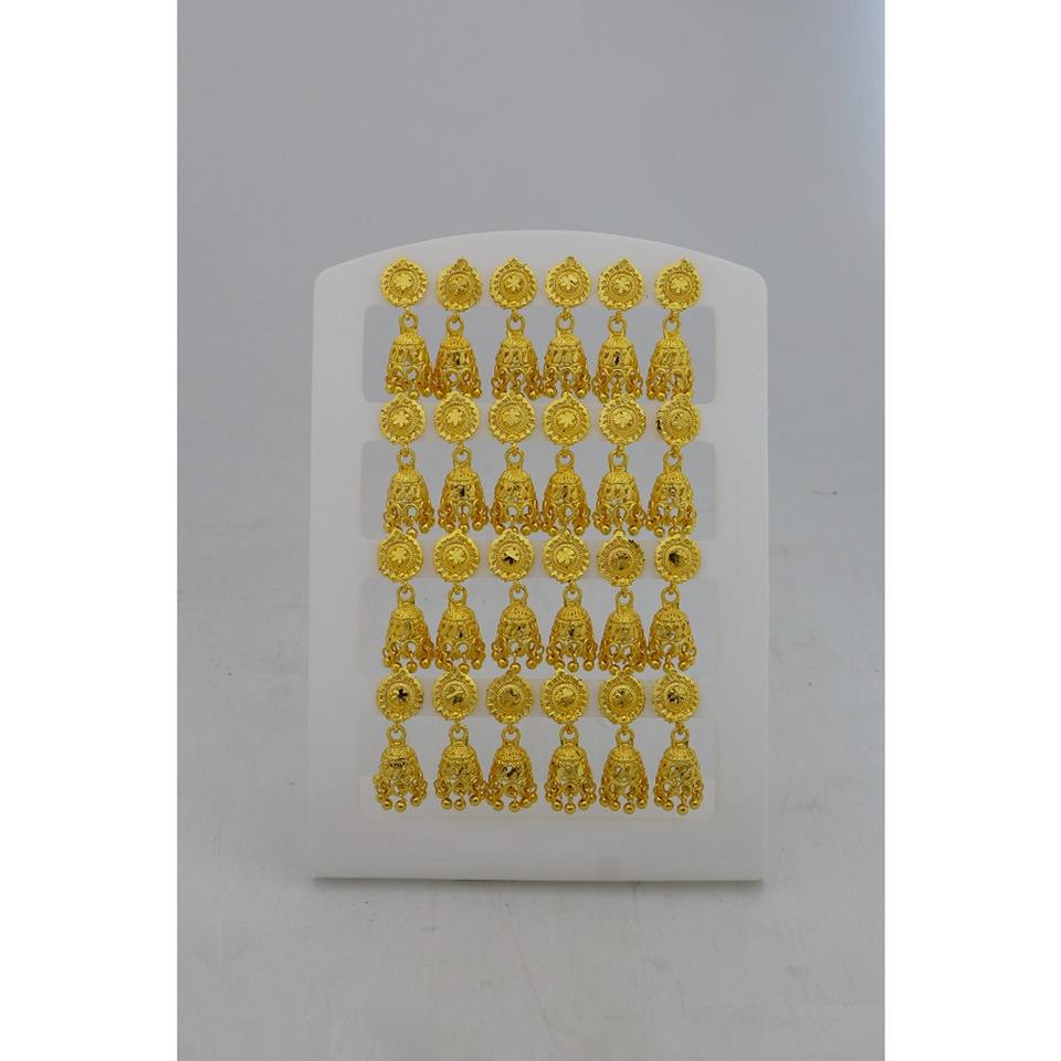 ต่างหู Jhumka ดีไซเนอร์พรีเมี่ยมต่างหูชาติพันธุ์สมบูรณ์แบบเหมาะสำหรับงานแต่งงานเครื่องประดับทองเหลืองสีทองมีขาตั้งสำหรับผู้หญิงและเด็กผู้หญิง