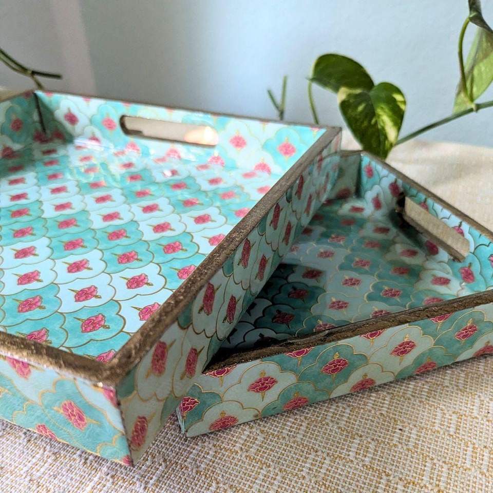 ถาดเสิร์ฟลายพิมพ์ MDF ดีไซน์พรีเมียม รุ่น 24 สำหรับกาแฟ ชา ขนม ของหวาน-ชุดเสิร์ฟเครื่องดื่มเนื้อเรียบ