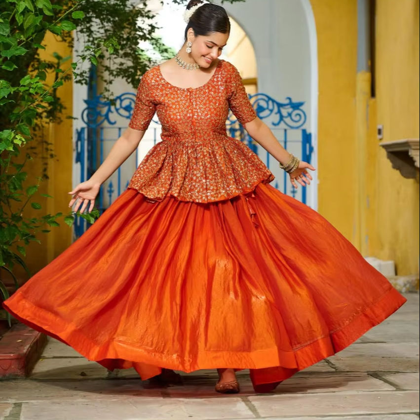 ชุดงานเฉลิมฉลอง lehenga แบบย้อนกลับดีไซเนอร์พรีเมี่ยมปักเลื่อมที่ทันสมัยสำหรับงานแต่งงานงานดิวาลีปาร์ตี้