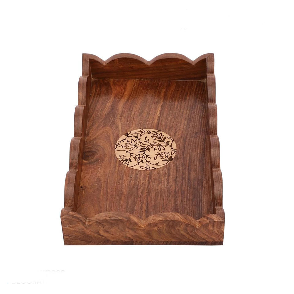 ถาดเสิร์ฟไม้ดีไซน์พรีเมียมพร้อมลายไม้สวยงามสำหรับการเสิร์ฟอาหารและการจัดแสดงอย่างมีสไตล์