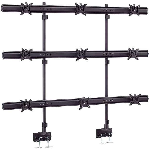 ขาตั้งมอนิเตอร์เก้าตัวติดตั้งบนโต๊ะแบบพรีเมี่ยมพร้อมการเคลื่อนที่เต็มระยะเพื่อการดูที่สะดวกสบายและการตั้งค่าการทำงานที่มีประสิทธิผล