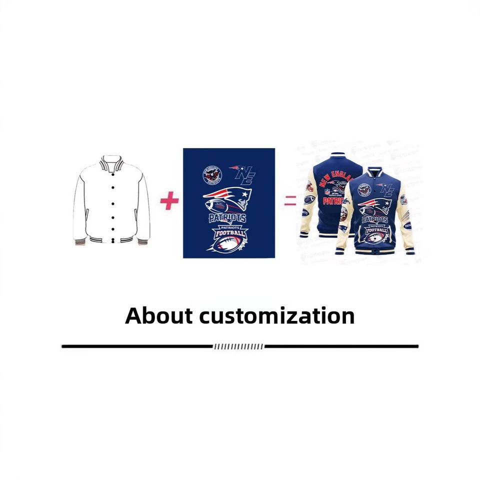 เสื้อแจ็คเก็ตพรีเมียมสำหรับทีมเบสบอล Varsity Letterman พิมพ์ลายดิจิทัล สีน้ำเงินขาว สำหรับเล่นกีฬากลางแจ้ง สไตล์สตรีทแวร์ สำหรับฤดูใบไม้ผลิ