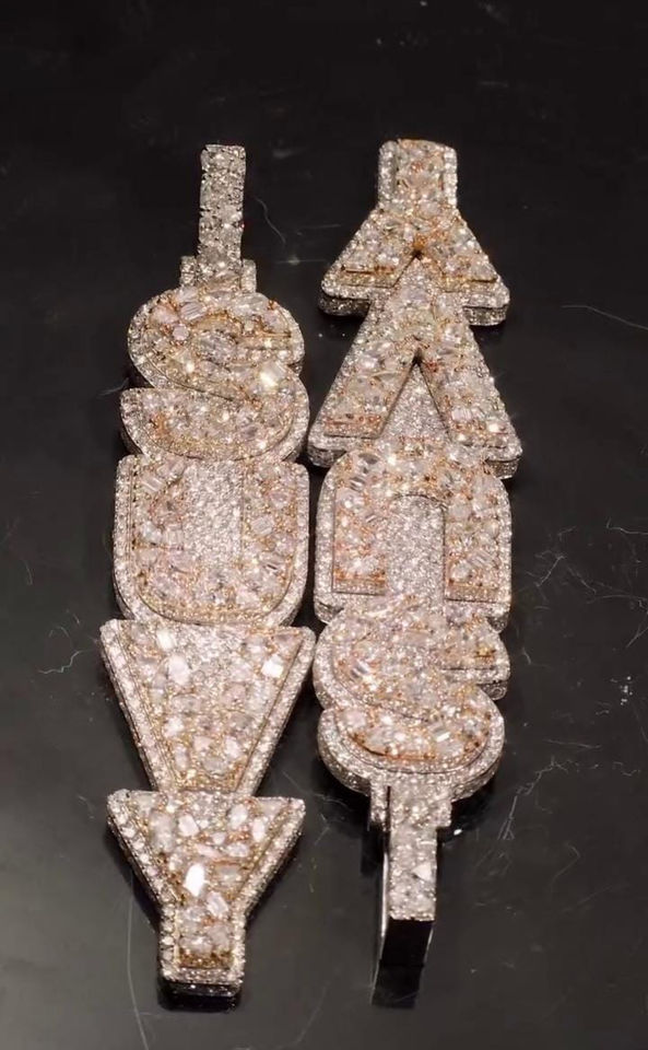 จี้เพชร VVS รูปตัวอักษรตามสั่ง EICY JEWELS ชุบทองคำขาว 14k ทรงเหลี่ยมเจียระไนแบบบริลเลียนท์ ตัวเรือนเงินแท้ประดับเพชรแบบไมโครอินเซ็ต