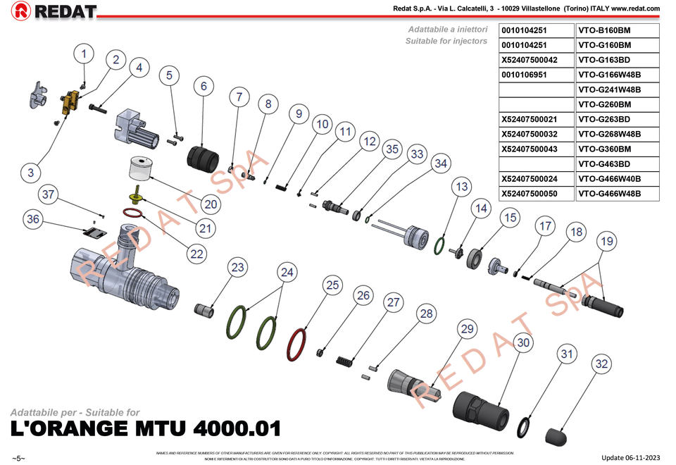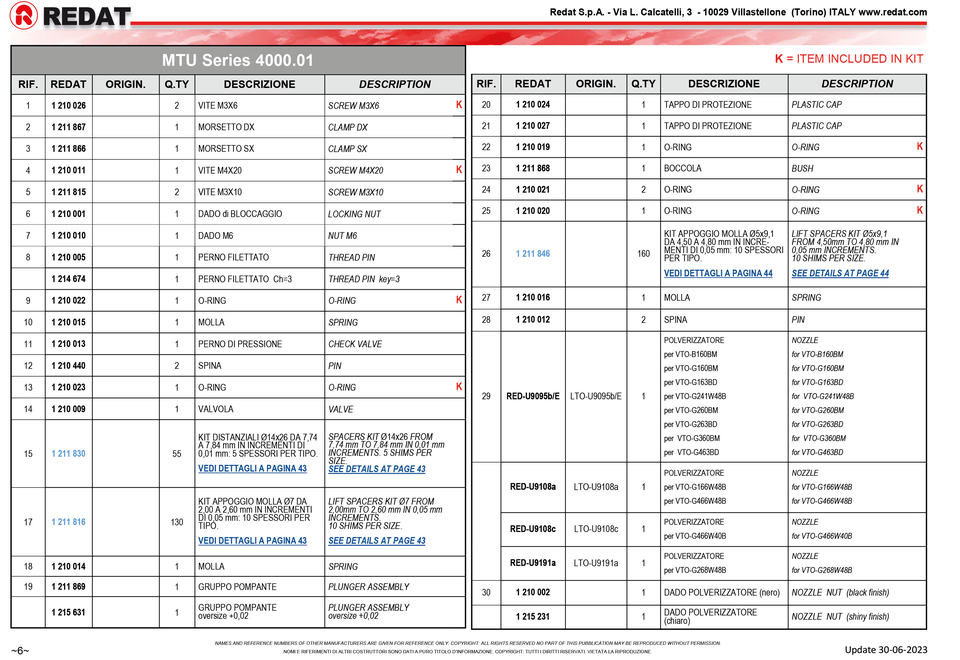 น็อตหัวฉีดน้ำมันดีเซลพรีเมียม ผลิตในอิตาลี สำหรับหัวฉีด MTU L'Orange 4000.01 รุ่น 1210002 ผิวด้าน
