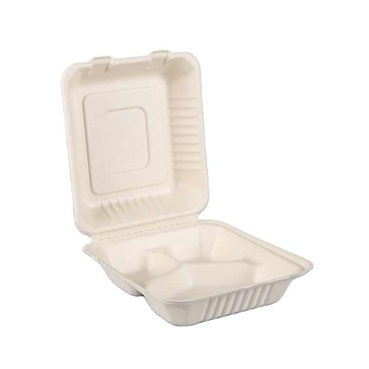 กล่องอาหารกลางวันแบบใช้แล้วทิ้งทำจากชานอ้อยคุณภาพพรีเมียม บรรจุภัณฑ์อาหารย่อยสลายได้สำหรับร้านอาหาร โรงแรม งานจัดเลี้ยง และการใช้งานอเนกประสงค์ในครัวเรือน