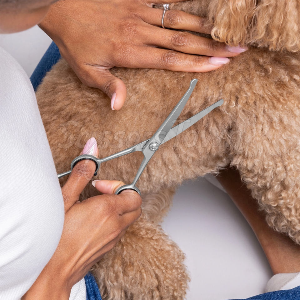 ชุดกรรไกรตัดขนสุนัขแบบพรีเมี่ยมมีใบมีดโค้งตรงและบางเหมาะสำหรับใช้ในบ้านหรือร้านเสริมสวย