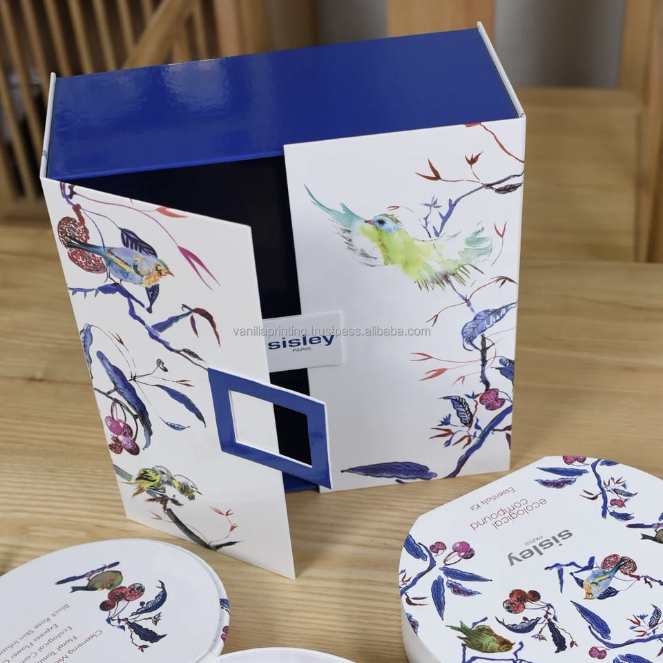 กล่องของขวัญพรีเมียมแบบสองประตูปิดด้วยแม่เหล็ก สำหรับเครื่องสำอางและน้ำหอม