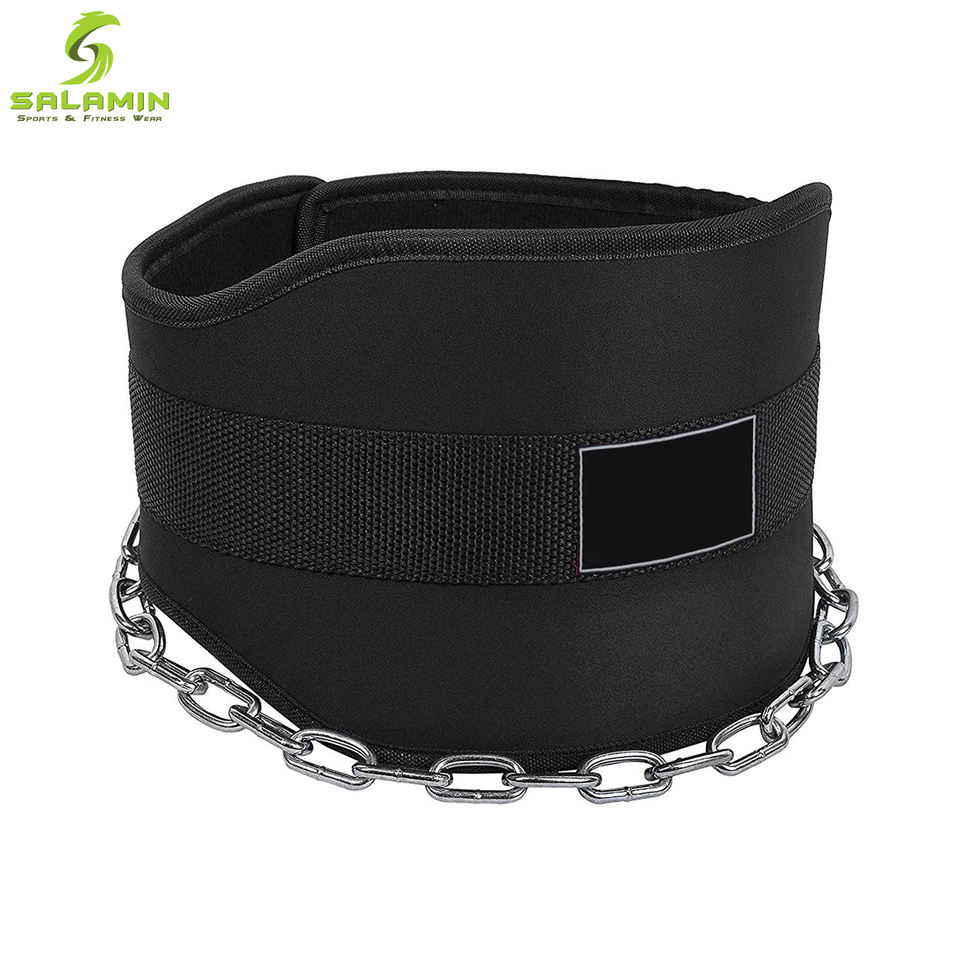 พรีเมี่ยมคู่เบาะเข็มขัดจุ่มนีโอพรีนที่มี32 "ห่วงโซ่เหล็กหนักสำหรับการยกพลังงาน,เพาะกาย,เข็มขัดจุ่มความแข็งแรง