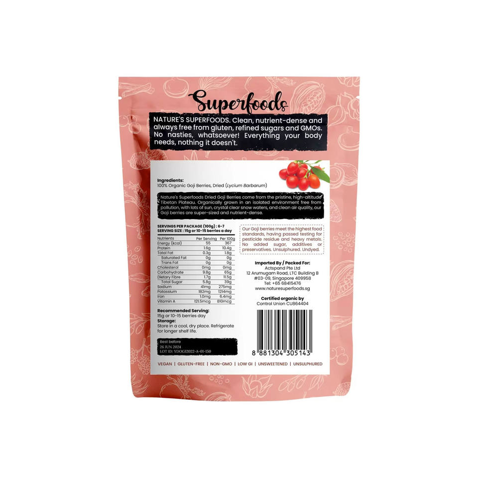 Premium Dried Superfood Berries Organic Goji Berries , Vegan & Gluten-Free Friendly
