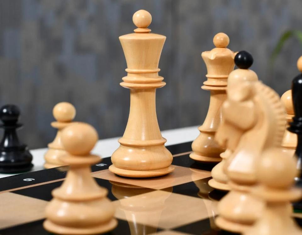ชุดหมากรุกพรีเมียม ดูบรอฟนิค 1950 V3.0 สีดำเคลือบเงาและไม้บ็อกซ์วูดธรรมชาติ ขนาดกษัตริย์ 3.75 นิ้ว ราคาดีที่สุด
