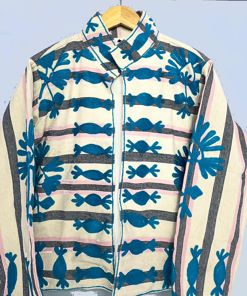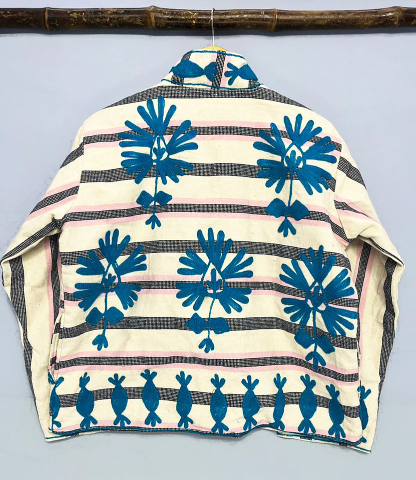 เสื้อแจ็คเก็ตปักมือผ้าฝ้ายลายเป็ดพรีเมียม | เสื้อแจ็คเก็ตบอมเบอร์แขนยาวสไตล์ชาติพันธุ์สำหรับทุกเพศ