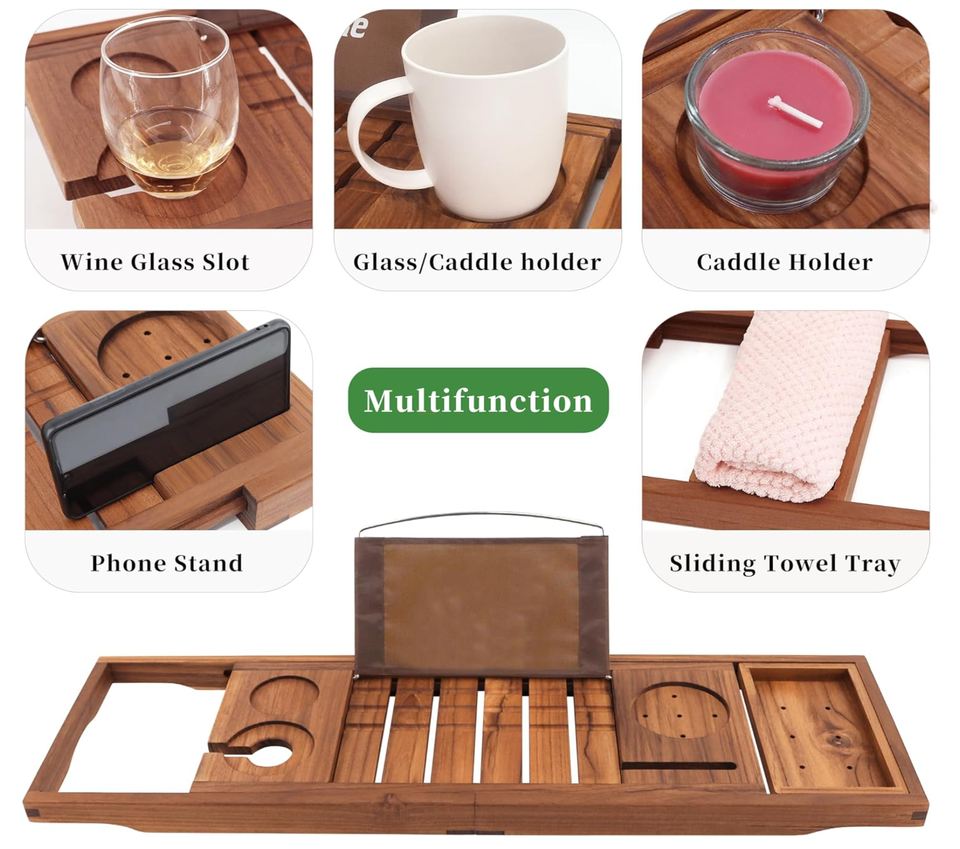 ถาดวางอ่างอาบน้ำไม้สักคุณภาพพรีเมียม ทนทาน ขยายได้ ป้องกันการลื่น ปลอดภัยต่อสิ่งแวดล้อม อุปกรณ์เสริมห้องน้ำสุดหรู เหมาะสำหรับเป็นของขวัญวันเกิด