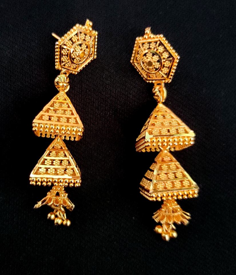 ชุดต่างหูพรีเมี่ยมแบบดั้งเดิม22CT ต่างหูชุบทองแบบ Jhumka เครื่องประดับสำหรับผู้หญิงที่สวมใส่โดยผู้ส่งออก