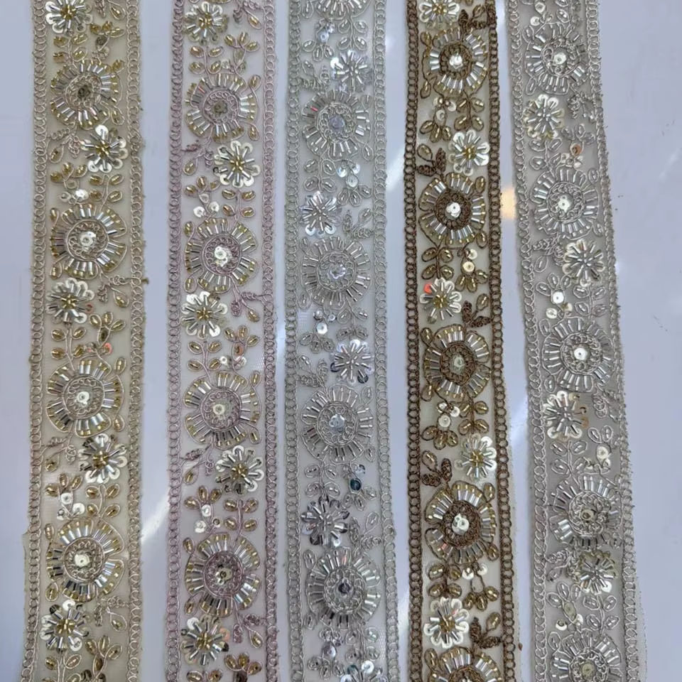 งานปักลูกปัดและเลื่อมแบบพรีเมียมที่เป็นมิตรกับสิ่งแวดล้อมบนผ้าทูลล์เนื้อละเอียดสำหรับชุดแต่งงานหรูหราสไตล์ชาติพันธุ์ที่ดูโรแมนติกและสง่างาม