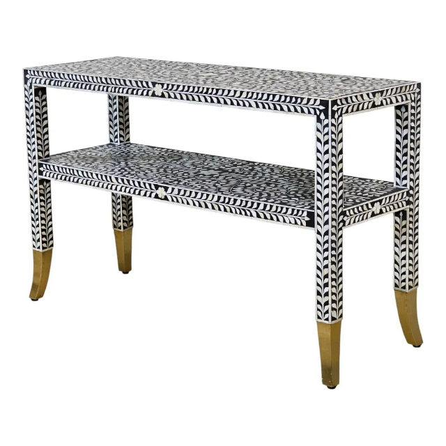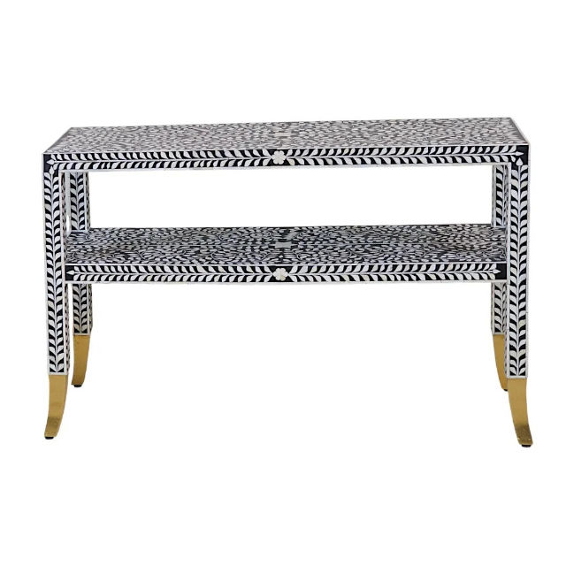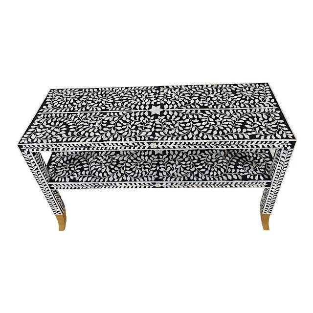 โต๊ะคอนโซลไม้เนื้อแข็งทำมือ ดีไซน์วินเทจ ตกแต่งด้วยกระดูก งานฝีมือระดับพรีเมียม เป็นมิตรกับสิ่งแวดล้อม เฟอร์นิเจอร์ห้องนั่งเล่นทันสมัยจากราชสถาน