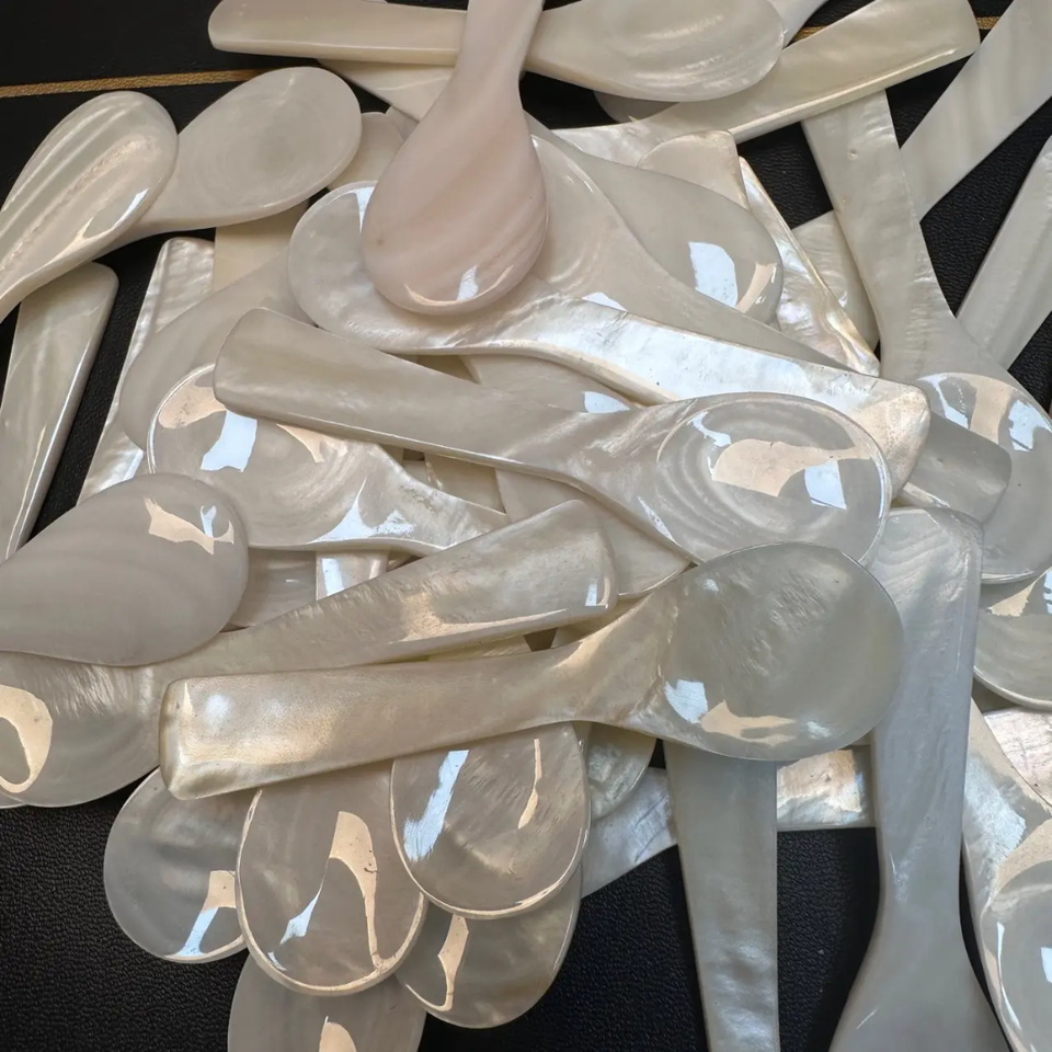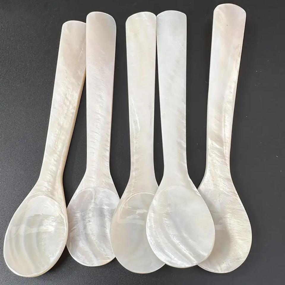 ช้อนคาเวียร์ไม้มุกขาวทำจากไม้ไผ่สุดหรูรักษ์โลก ขนาด 8 ซม. งานแฮนด์เมด สำหรับงานเลี้ยง DHT Handicraft