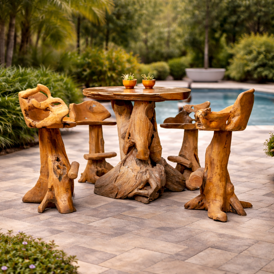 Natural Teak Root Base with Irregular Slab Top