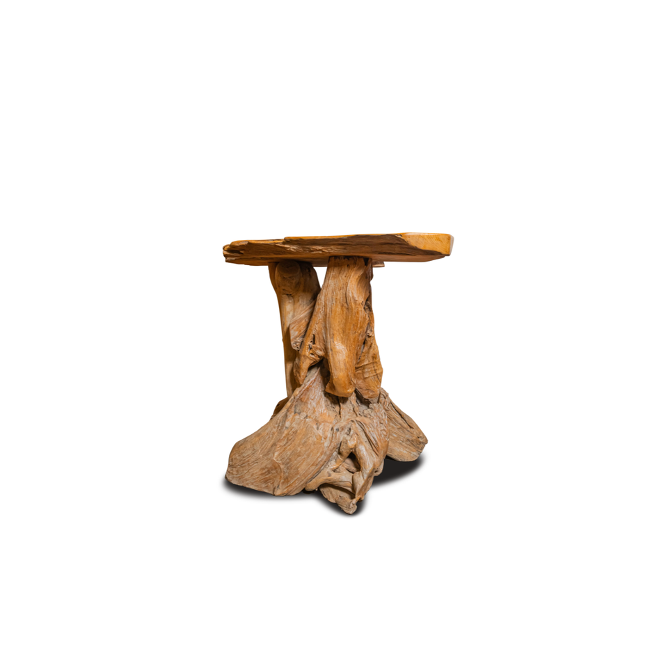 Teak Root Base + Teak Wood Slab Top
