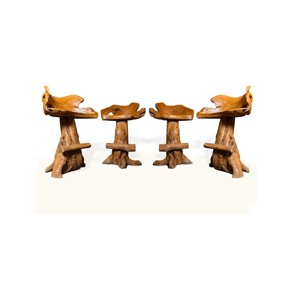 Rustic Teak Root Bar Table Set with Handmade Backrest Stools