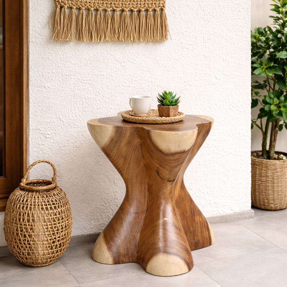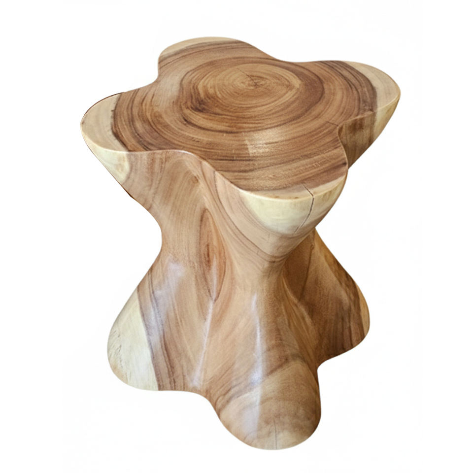 Premium Eco-Friendly Solid Suar Wood Hand-Carved Star Shape Organic Monkey Pod Stool Side Table Rustic Modern Bedroom Entry
