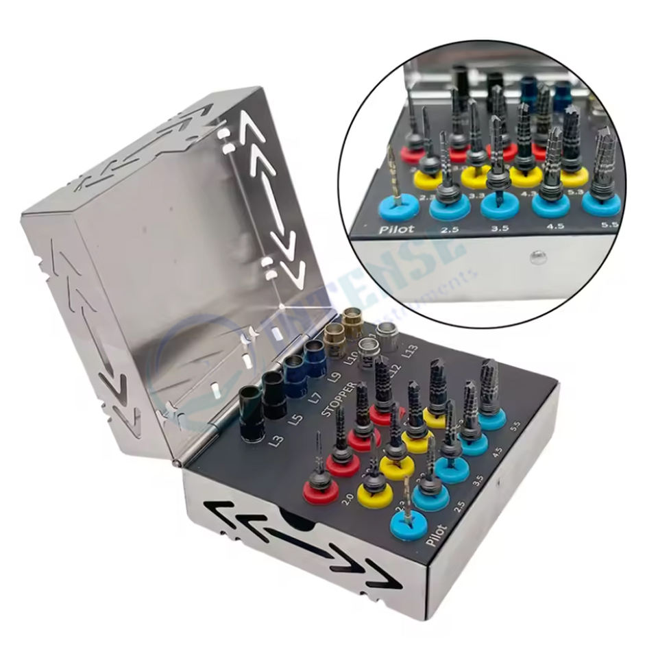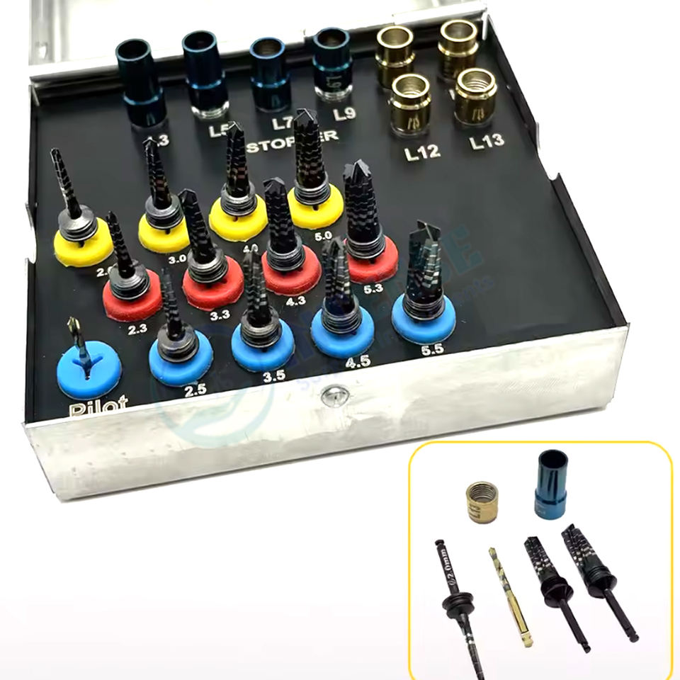 ชุดเครื่องมือเจาะรากฟันเทียมไฟฟ้าระดับพรีเมียม 21 ชิ้น ทำจากสแตนเลส พร้อมหัวเจาะสำหรับการกระตุ้นการเกิดกระดูก ตัวล็อค และเครื่องมือผ่าตัดสำหรับงานทันตกรรม