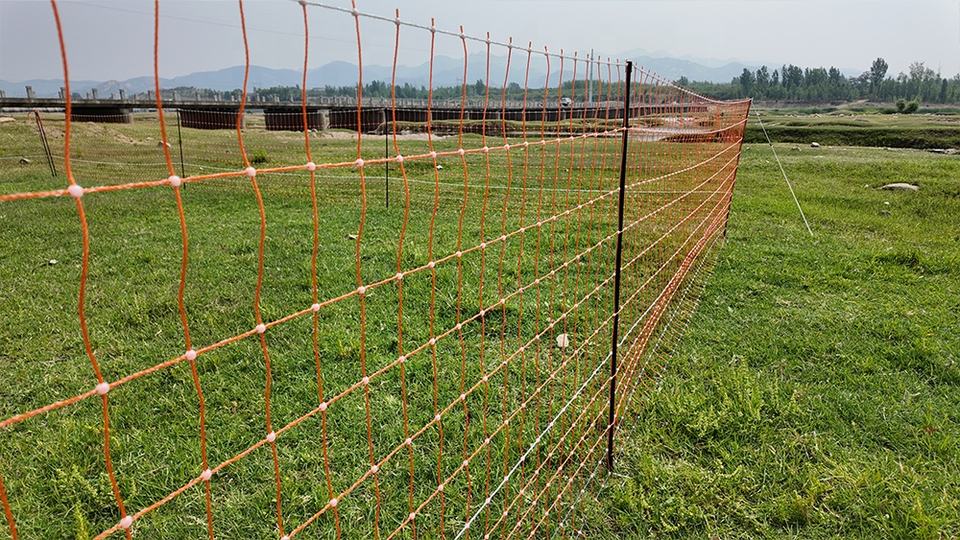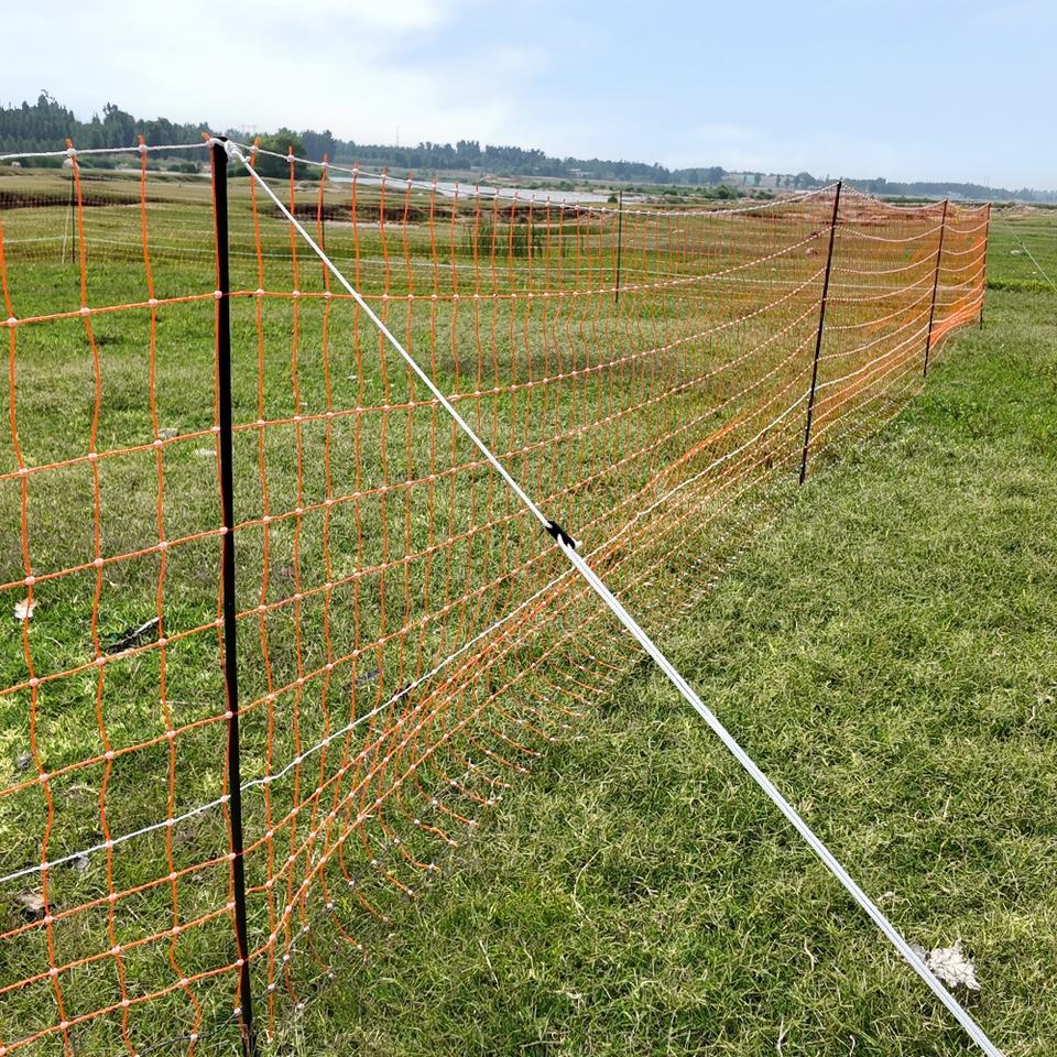 รั้วตาข่ายไฟฟ้าพรีเมียม ยาว 50 เมตร โครง HDPE ทนทานต่อรังสียูวี/ลม กันน้ำ เป็นมิตรกับสิ่งแวดล้อม ความต้านทานต่ำ เหมาะสำหรับฟาร์มและปศุสัตว์