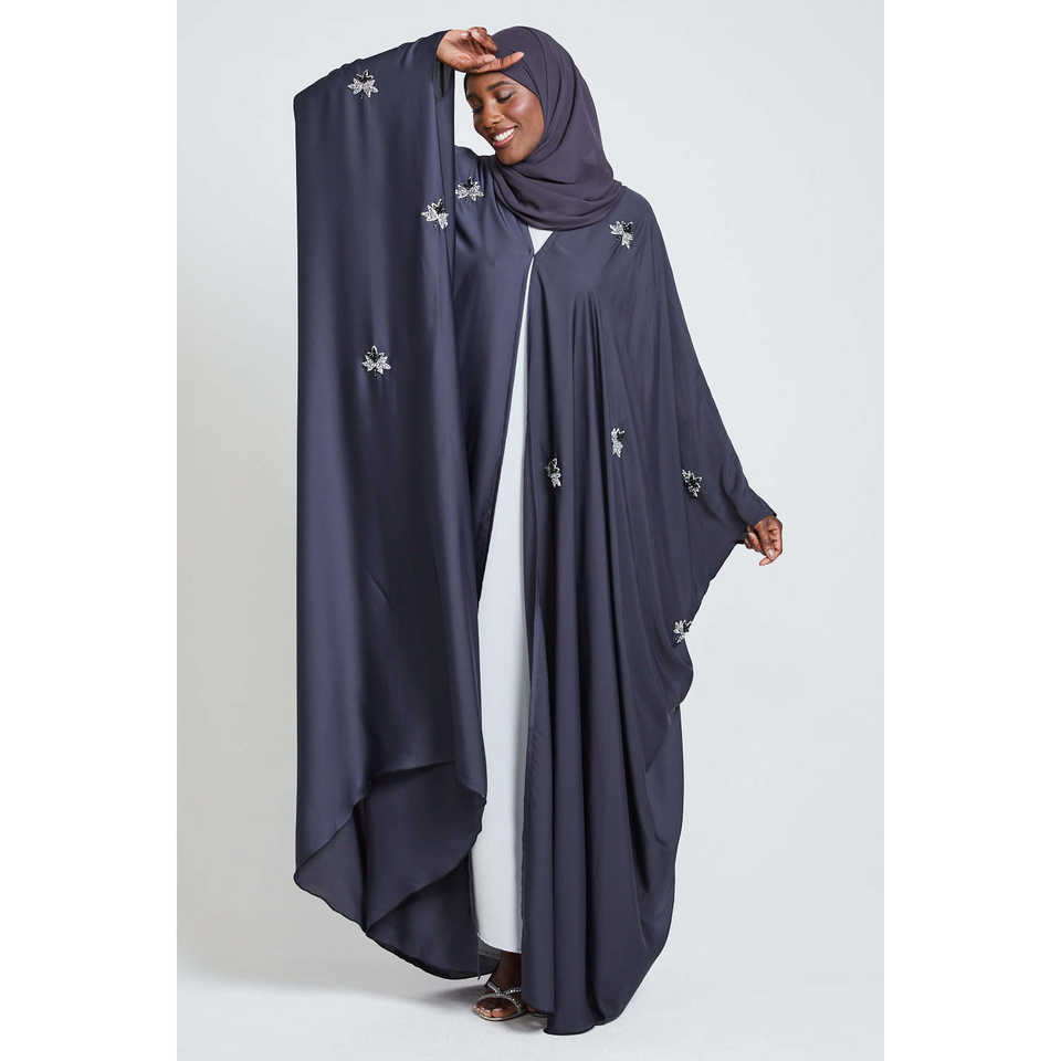 Midnight Ash Open Farasha Premium Embellished Traditional Muslim Clothing and Accessories
