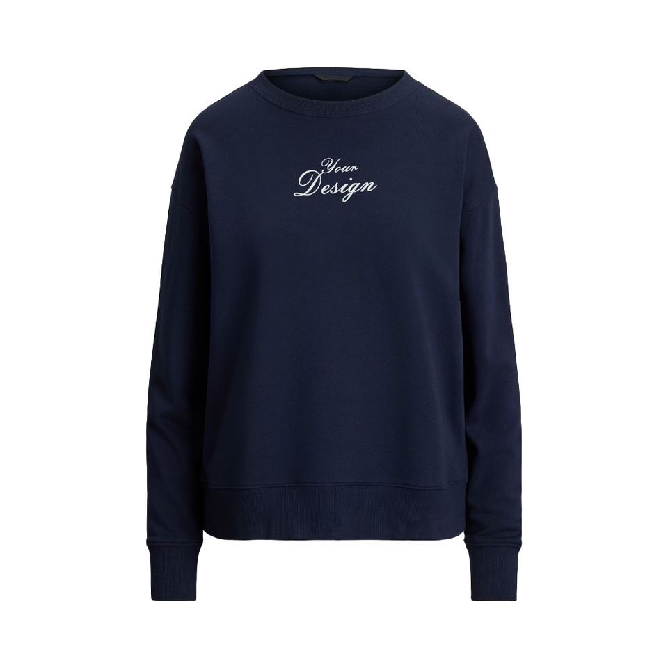 เสื้อสเวตเชิ้ตคอกลมผ้าฟลีซปักลายพรีเมียมสำหรับผู้หญิง ผ้าคอตตอนผสมอย่างดี ให้ความอบอุ่นในฤดูหนาว น้ำหนักปานกลาง พร้อมโลโก้ด้านหน้า