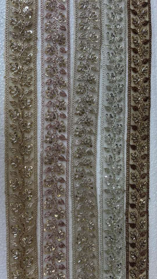 เชือกผูกรองเท้าปักลายพรีเมียมประดับด้วยหินและเลื่อม | ขอบผ้าเจ้าสาวสุดหรู | งานปักลายโกต้าปาตติแบบดั้งเดิม | อุปกรณ์งานฝีมือขายส่ง