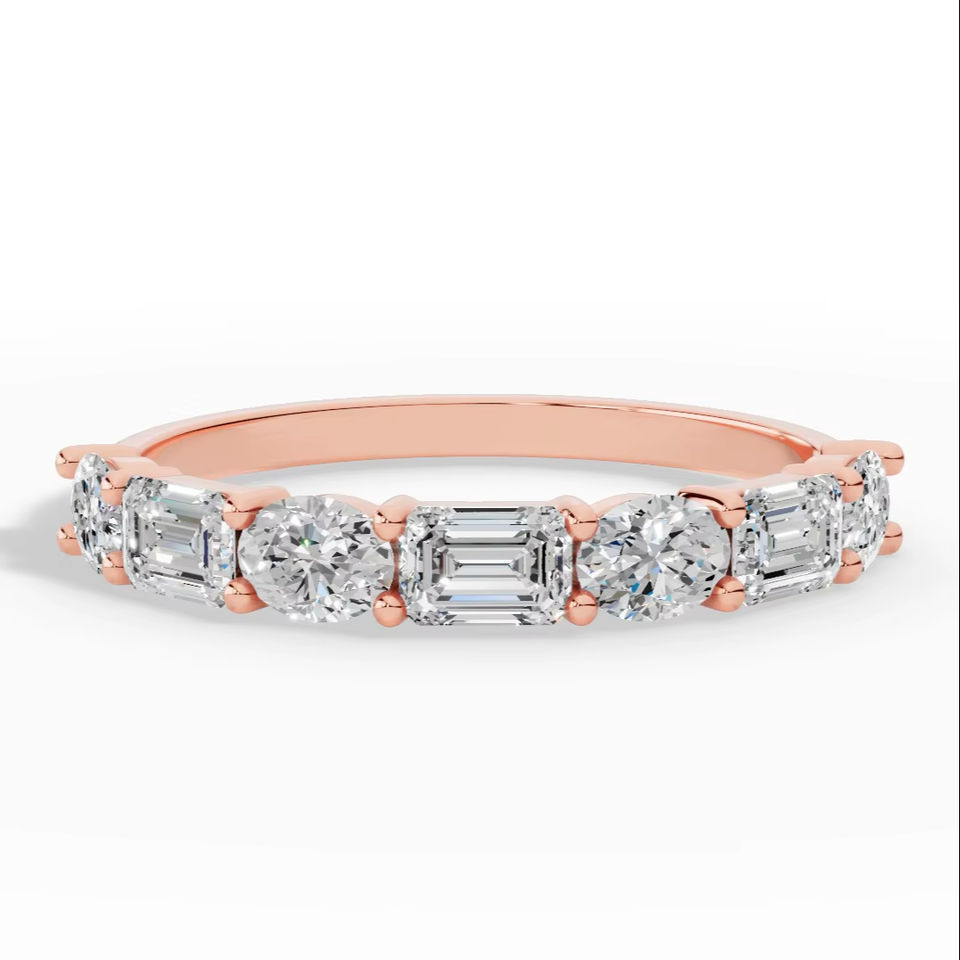 แหวนมงกุฎมรกตพรีเมียม ประดับเพชรทรงรีและทรงเหลี่ยมมรกต เพชรเลี้ยงในห้องปฏิบัติการ ทอง 14K ขายส่ง OEM ผู้ผลิตและจำหน่ายเครื่องประดับชั้นดี