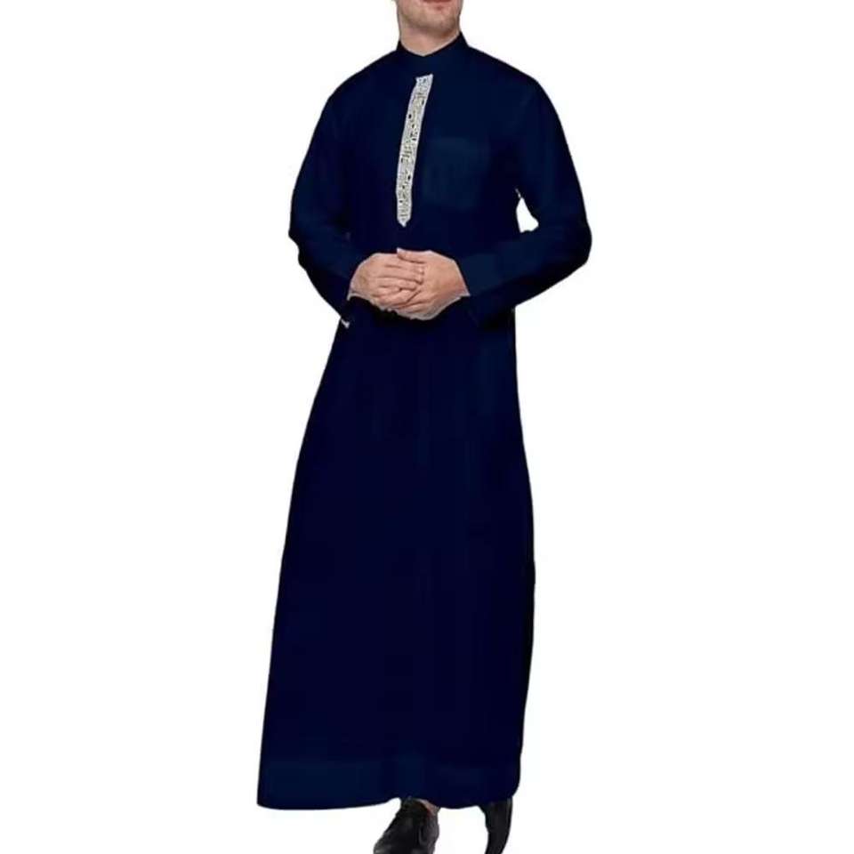 พรีเมี่ยม emirati thobe สีฟ้าหรูหรา kandura เครื่องแต่งกายอาหรับแบบดั้งเดิม jubba ที่สง่างามผู้ชาย